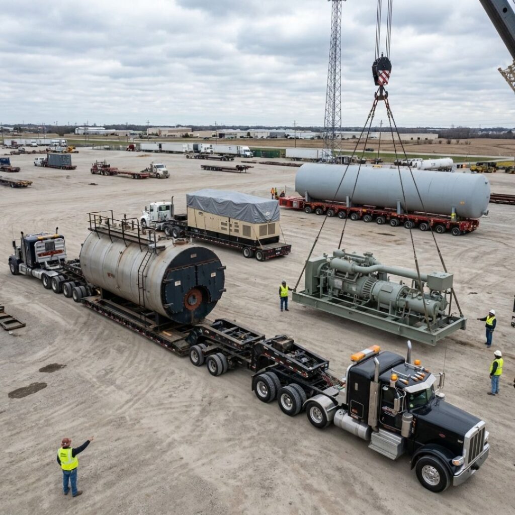 Move heavy industrial units such as boilers, air compressors, DG sets, pressure tanks, and process vessels with engineered handling We use cranes, forklifts, multi-axle trucks, and safety-certified